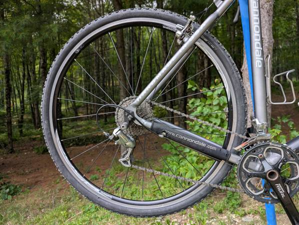 Large Frame, well maintained, excellent gravel riding intro bike for guys 6'+. In good condition, good components.