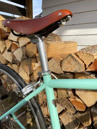 This delightful little rig is setup and ready to go for someone who wants a comfy and stylish little ride around town. Dependable 11-speed drivetrain with caliper breaks, a still fresh Brooks saddle, double sided (clipless on one side, flat on the other so you've got options!) MSW pedals, and nice swept back bars on a built-to-last Waterford steel frame featuring the Milwaukee Bicycle Company's Wisconsin badge on the seat tube. It's currently set up for someone in the 5'2" range with a relatively compact frame. It's in great condition overall with just some cosmetic scuffs here and there. Has braze-ons so you can easily add front and/or rear racks, fenders, etc.