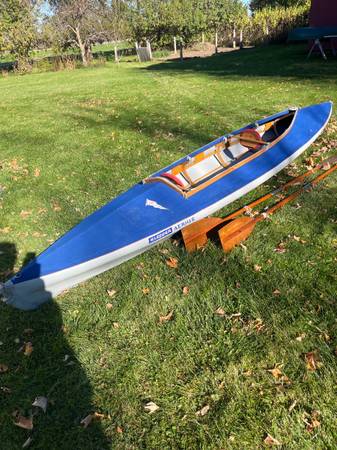 This is a really cool folding kayak that we have owned for over 30 years. We are not quite as nimble as we used to be so are reluctantly parting with it. It is in decent condition and ready to use although there are several small parts that could use replacement. Keepers are still being built and parts appear to be available. The boat can be stored or transported in several bags. Believe it or not, a fellow named Hannes Lindermann, sailed and paddled one of these across the Atlantic! We do not recommend this! This example does not have the sailing rig.