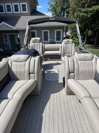 Whether you are looking for a boat that will last, a boat that will perform, a boat that will provide you with all the latest and greatest creature comforts available, or all three...the Barletta L-Class Pontoon Boats will check all the boxes. Fresh water boat used on Lake Champlain exclusively. Great handling and a joy to drive with only 165 hours and well maintained. You will love this boat as we have. 225 Mercury engine. Comes with brand new cover.