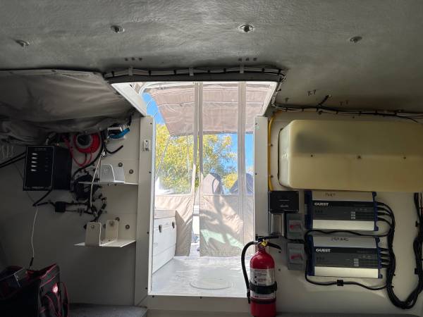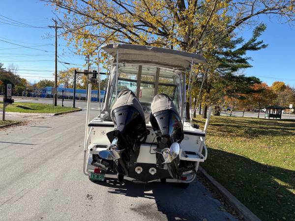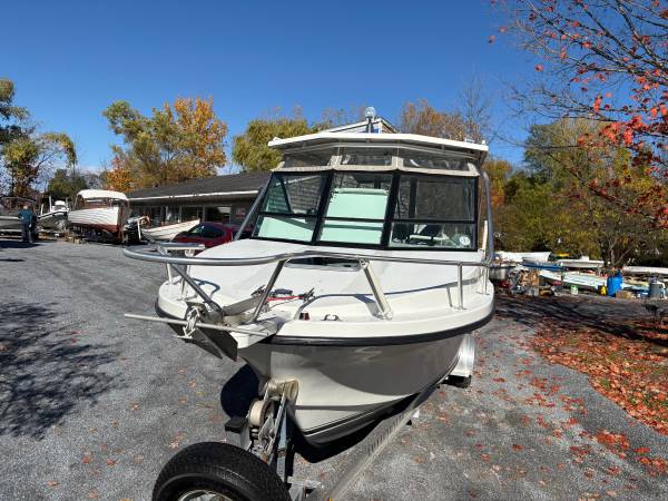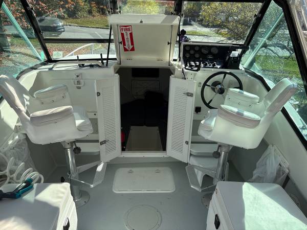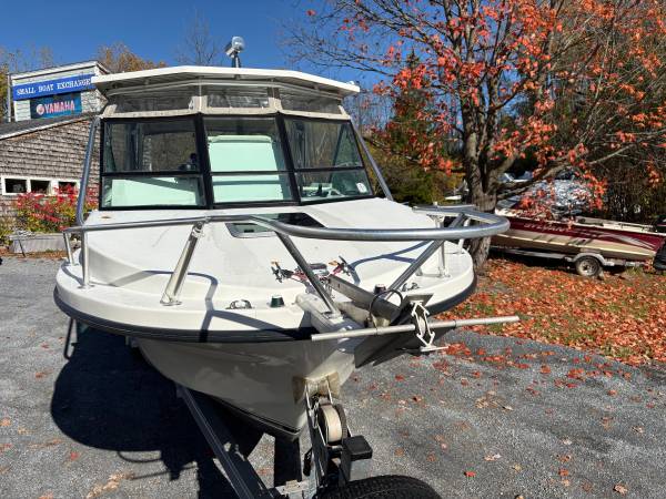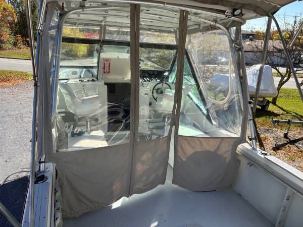 This boat is a great package for boaters looking for space and pace. The cabin offers protection from weather and sun. Comes with a full enclosure, full wash-down station, trolling motor, down riggers, multiple bottom finders and a trailer in great shape. This would be a perfect charter boat or leisure fisherman. The hull is in mint condition.