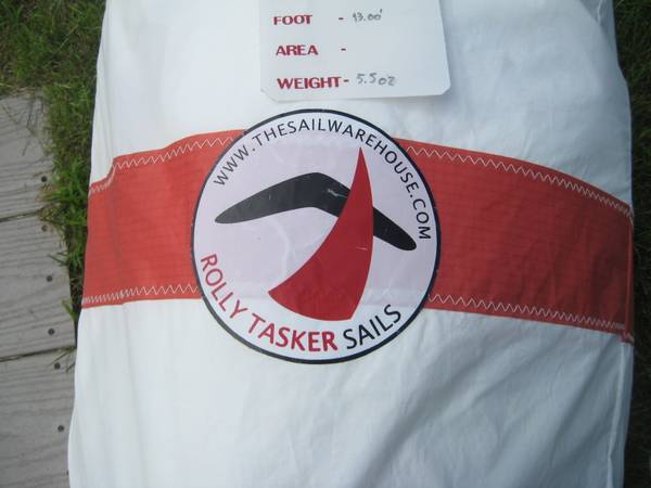 Genoa sail made by Rolly Tasker. This sail is about a 135% headsail, depending on the boat it's used on. [came off of a 28' ]