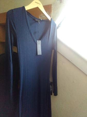 New dark navy long floating dress by BCBG with originl tag, new was $138