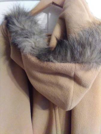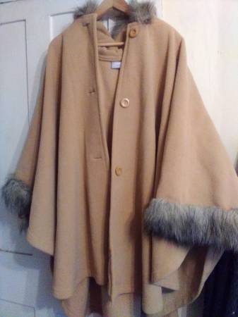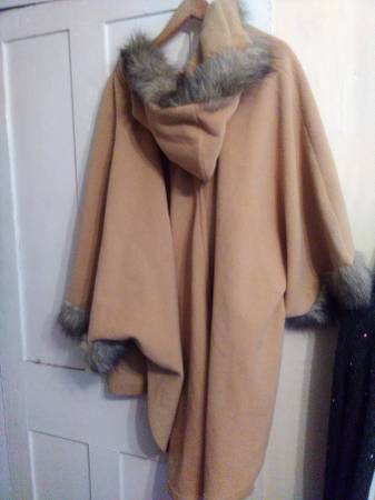 Vintage womens winter shawl, robe, coat, jacket with faux fur, one size