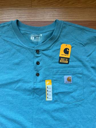 Carhartt T-shirt. XL. Relaxed fit. Teal. Brand new - unwanted birthday present, unable to return as outside of return window. Tried on once. Retail value: $19. Happy to meet in the Burlington area.