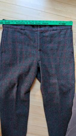 Johnson Woolen Mills coat and pants. Coat size: 46. Pants size: estimated 40-41" waist. Both items are in good condition.