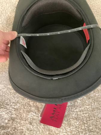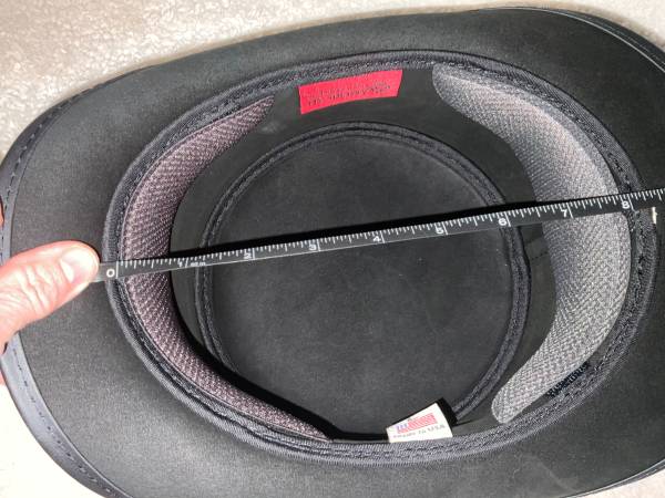 A gift —never used, still has tags. Size of hat can be adjusted —smaller, inserts included and condition for leather. Women’s size: large = 22 7/8 to 23 1/2 inches. My head is 22 inches in diameter and fits fine without insert pads. Two hats available, one black and one brown, $125 each or both for $250, firm. Originally, $199 ea. See website for American Hat. Cash, Venmo, or PayPal, no cards or checks.