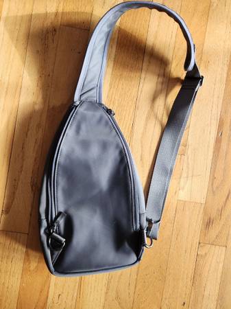 New Baggalini Sling Purse. It has two zippered pockets each with an inside pocket and it has a zipper on each side in the back. This sells for $70 online.