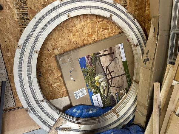 BR>The benchwork was made by a company that made custom model railroad layouts (I think now out of business) and is designed to make a stable support for your model RR. The wood is cabinet grade nominal 1x4" 7 ply, with pre-drilled holes in the ends to screw together and holes in the middle to run wires. The helixes were made for 2 tracks, 28" radius inside track and 32" radius outside, and are about 67" total diameter. One helix has been cut into semi-circles while the other is all in one piece (heavy!) and they come with threaded rods to space each layer. Each helix has 5 levels or turns.