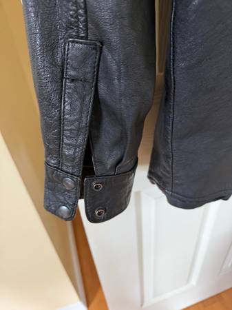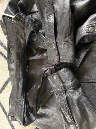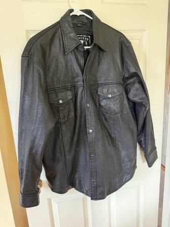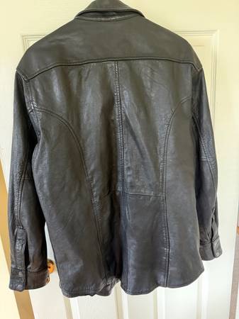 Mens Barneys black leather jacket in very good condition size medium no smoking house $40.