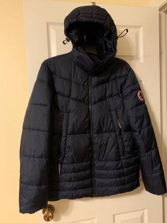 Mens Rokka&Rolla Water Resident Puffer Jacket Hooded Winter Jacket like new condition color dark blue size medium $30.