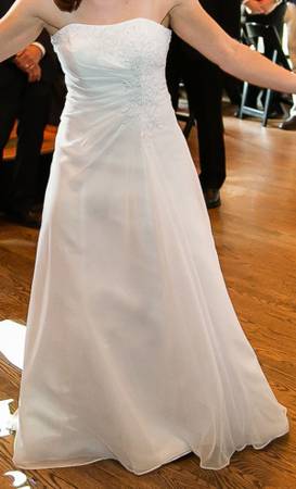 Beautiful size 4 wedding dress! Priced to sell as I really don't need it anymore :) Worn once. No stains or tears. Non-smoking. Cleaned and preserved. Take a look at the pictures!