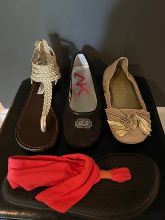 Gold are Steve Madden Black are Anne Klein Beige are Seychelles Coral are Sanuk yoga slings All are in great condition I am located in Waterbury but can arrange to meet up in south Burlington