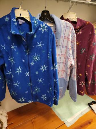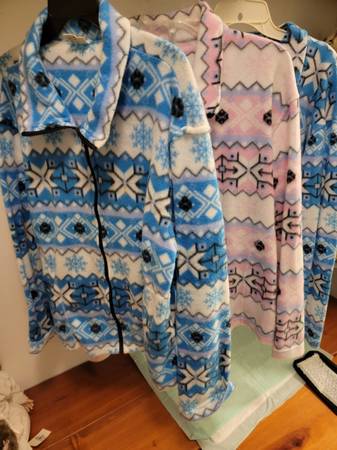 4)Blue Zipper LAURA SCOTT Fleece W/ Ssnowflake Design, and pockets. SIZE=1X ---$15