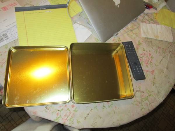 It measures 8 x 8 x 2 1/2" H and very clean inside and out
