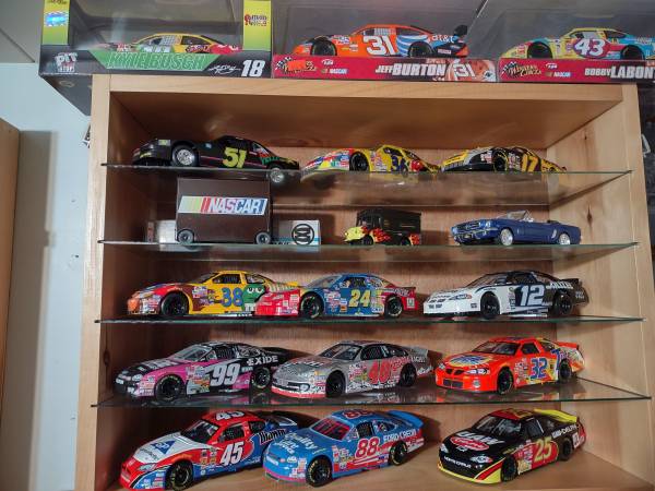 1/24 Scale Die-Cast/Plastic Nascar Model Cars Plus and small Cabinet plus other Pieces