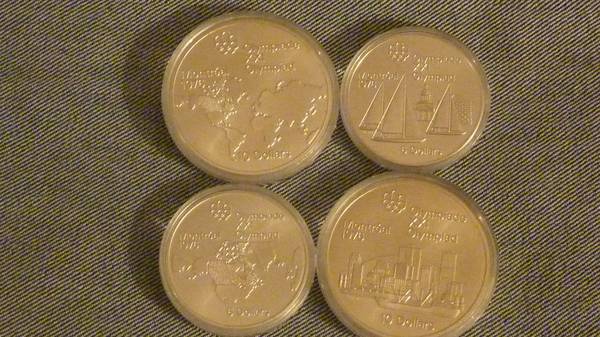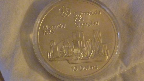 Coin #3, $10 Canadian - shows the skyline of Monteal, host city of the games