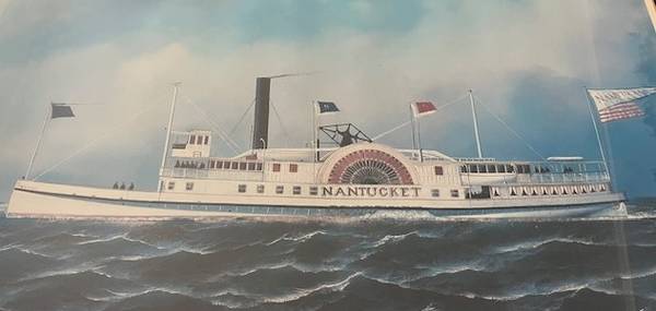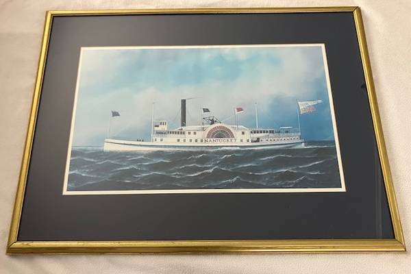 Large "Steamship Nantucket" Matted / Glassed / Framed Print. Measures 31-1/2" Wide and 24" Tall.