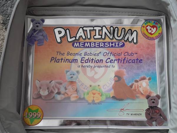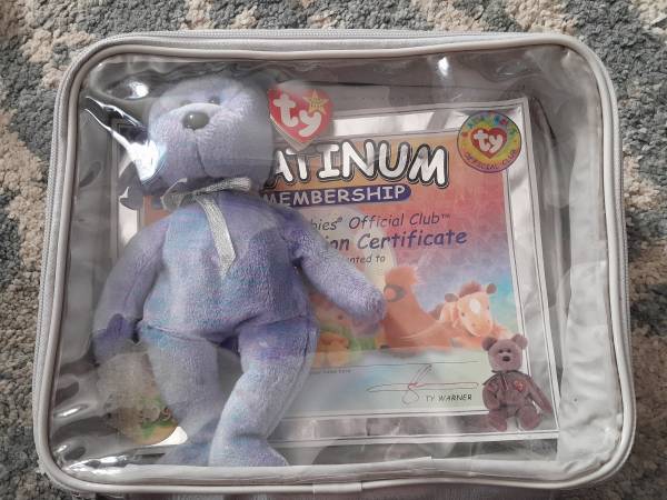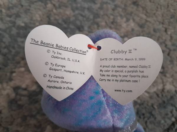 Vintage TY Clubby II beanie Platinum set. Zipper bag case Clubby II Platinum signed certificate Dated March 9, 1999 $15 Contact Sue