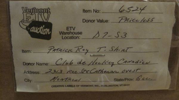 Patrick Roy Framed & Autographed T Shirt - $285 (Franklin)