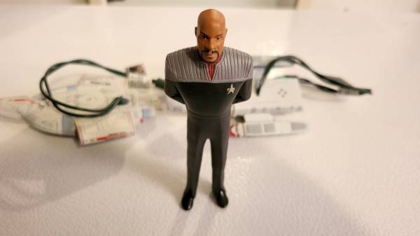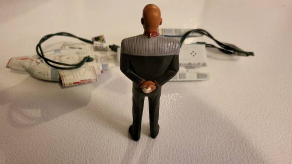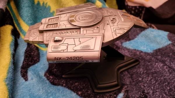 I have The Defiant, Rio Grande and Commander/Captain Sisko no boxes in this lot. Notice the baseball in his palm behind his back. Franklin Mint Defiant Cardassian Warship Galor Class