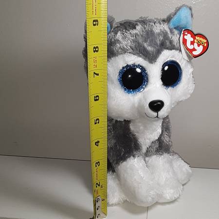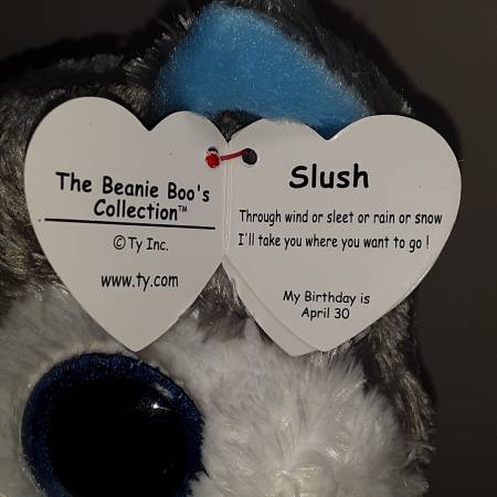 Made with super soft Ty Silk fabric Cuddly white and grey fur Sparkly blue Beanie Boo eyes Includes official Ty Heart with birthday and poem Surface clean only Asking $8.00 cash
