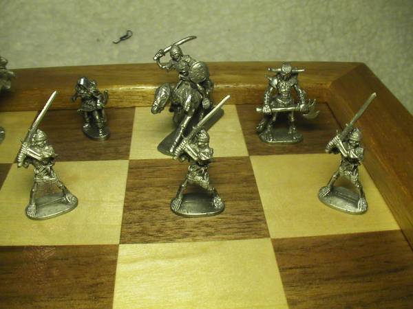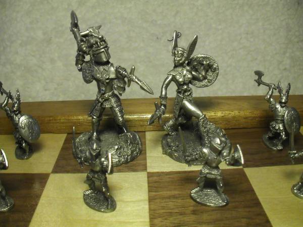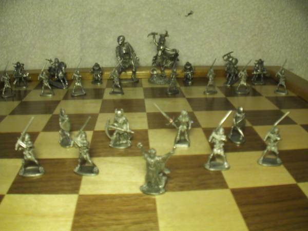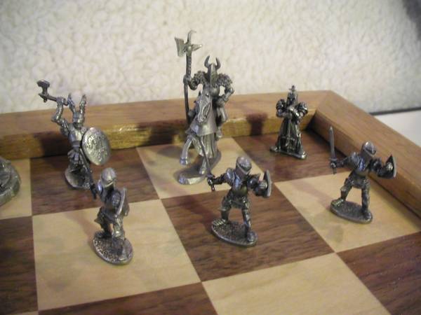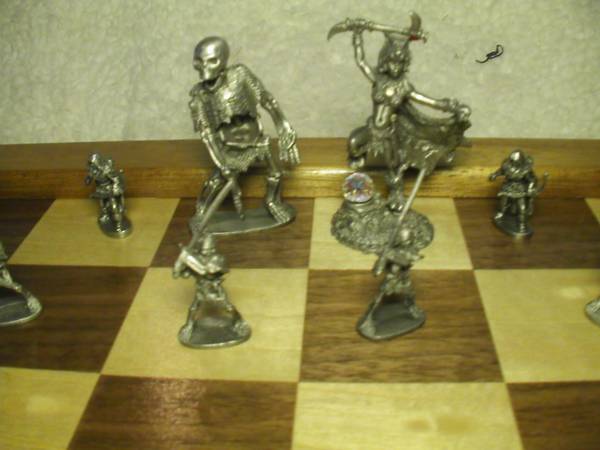 Unique Pewter Chess Set Includes traditional 32 pieces [16 for the Good Army versus 16 for the Evil Army]