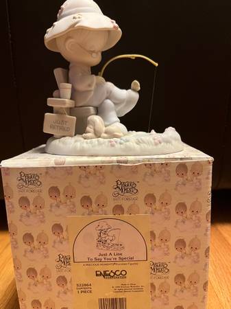 Eight vintage Precious Moments figurines in excellent condition. Manufactured from mid-1980's to mid-1990's. All but one, "Love Never Leaves a Mother's Arms", are in their original boxes. Selling as a group for $100 or best reasonable offer. Cash only, please. Please email me if you would like additional information or photos. Happy to deliver locally at a public meeting space :)