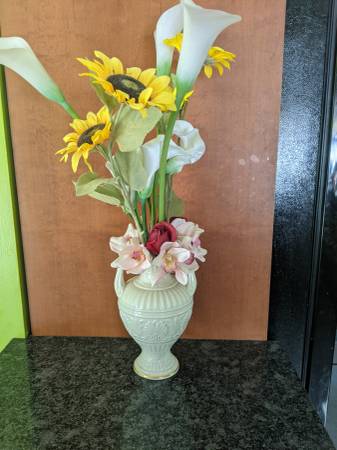 LENOX ATHENIAN MEDIUM URN VASE 11" TALL IVORY USA. No chips or cracks throwing in the fake flowers as well