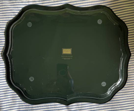 Beautiful vintage Ian Logan toleware serving tray for sale with floral painting by Lucy Neil. Excellent 1993 vintage condition with some slight scratches and a tiny wear spot that can be seen on the right side of the larger planter in the photo. The tin tray measures 22” x 17.5”. Made in the UK