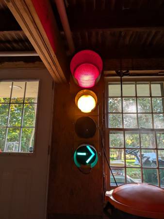 Awesome light, hardwired with 15 foot long cord and outlet plug. Missing a bulb which is super easy to remadie. Great condition.