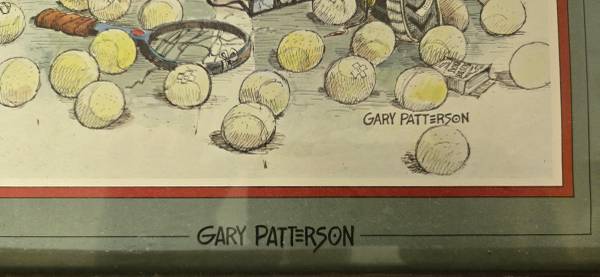 This listing is for a vintage Gary Patterson framed print with tennis theme titled "Practice, Practice, Practice" Overall, it's in good condition with some wear on the frame and minor aging of the...