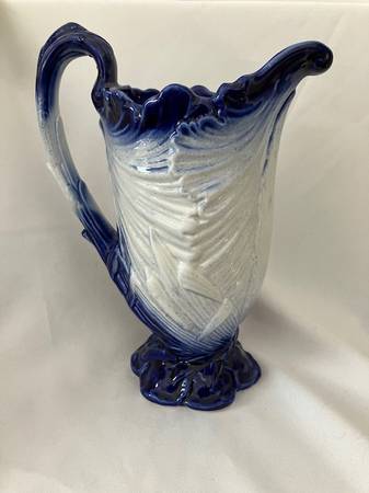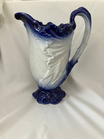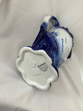 Vintage Burleigh Staffordshire Ironstone "Cattails in the Leaves" Cobalt Blue and White Pitcher. Staffordshire England. In Excellent Vintage Condition. Heavyweight, Measuring 10-1/2" Tall x 8" x...