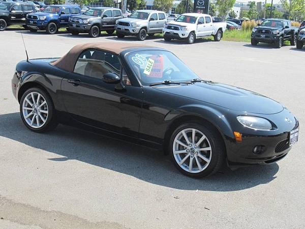 SUPER CLEAN MX-5 MIATA!! AUTOMATIC!! Our 2008 Mazda MX-5 Miata Grand Touring Convertible Black only has 76,000 miles and is equipped by the 4 cylinder automatic transmission. Meet our gorgeous 2008 Mazda MX-5 Miata Grand Touring Convertible, ready to impress in Black. Powered by a 2.0 Liter 4 Cylinder that delivers 166hp. This Rear Wheel Drive drop-top earns nearly 27 mpg on the highway while offering easy acceleration and a smooth ride, accented by great-looking alloy wheels, halogen fog lights, and a convertible soft-top. Our Grand Touring offers a wealth of amenities and comfort features. Take down the top easily and sink into the heated leather front seats. This 2008 MX-5 Miata has been fully serviced and is ready to go. It comes all state inspected and 20 day plates! Extended Warranties are available!!