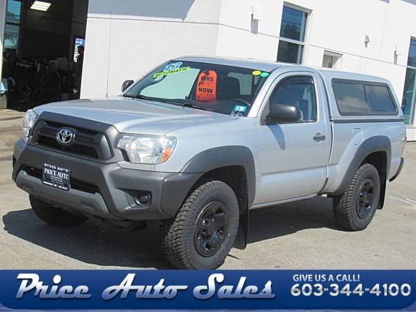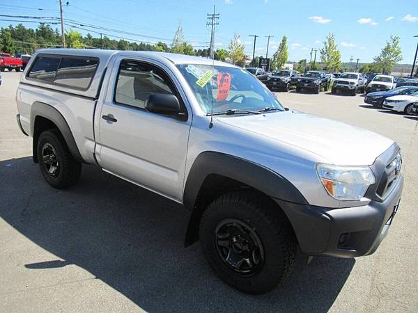 4X4 REGULAR CAB TACOMA!! MATCHING CAP!! AUTOMATIC!! Our 2013 Toyota Tacoma Base Regular Cab Silver 4WD only has 166,000 miles and is equipped by the 4 cylinder automatic transmission. Look no further than our 2013 Toyota Tacoma Regular Cab 4X4 shown in Silver. Powered by a 2.7 Liter 4 Cylinder producing 159hp. Our Four Wheel Drive scores nearly 21 mpg on the highway. The utility of this versatile truck paired with a good fuel economy is a very attractive combination! This 2013 Tacoma 4WD has been fully serviced and is ready to go. It comes all state inspected and 20 day plates! Extended Warranties are available!!