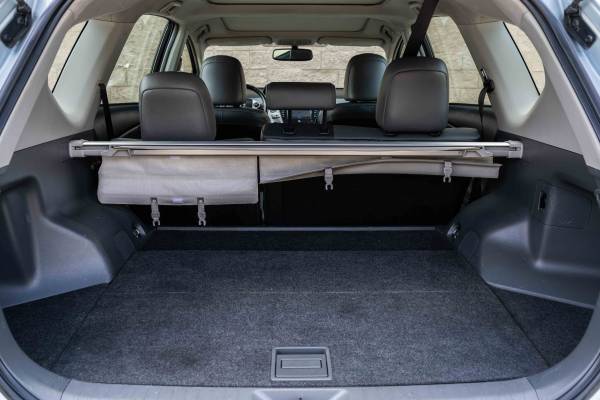 Cargo room is large: ~34.3 cubic feet behind rear seats, expanding to 67.3 cu ft with the rear seats folded.