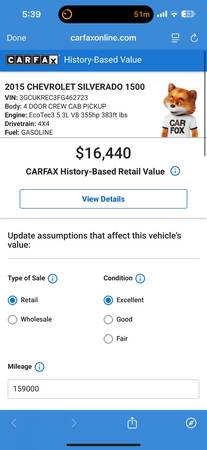 Series: 2015 Chevrolet Chevy Silverado 1500 LT Z71 Crew Cab 5.3L V8 355HP 4x4 Pickup*159K Miles*Runs & Drives Excellent*