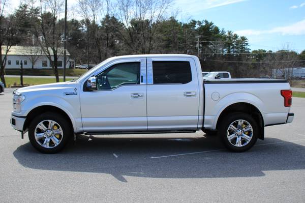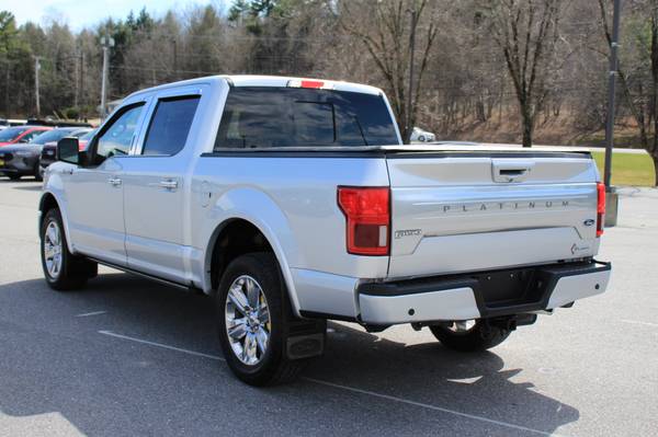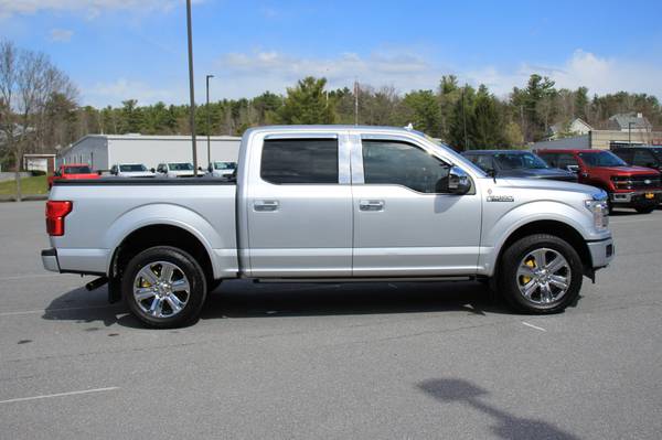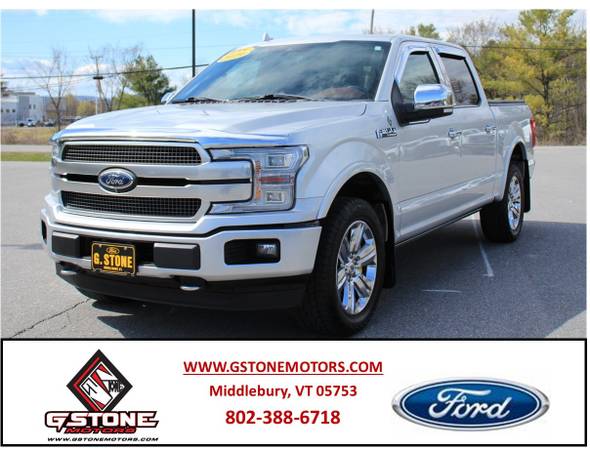 This is a 2019 Ford F-150 Platinum Crew Cab. This pickup truck is a 4X4 and powered by an aggressive 3.5L EcoBoost engine with 69K miles. This is in good condition, is well maintained and comfortably loaded with power leather heated and cooled buckets seats, power windows and locks, cruise, tilt, twin panel moonroof, tonneau cover, tailgate step, navigation, power running boards and more. Give us a call for more information 802-388-6718 . At G. Stone Motors we take anything in trade!