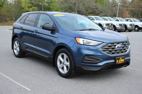 This is a 2019 Ford Edge SE. This SUV is AWD and powered by an aggressive 2.0L EcoBoost engine with 78K miles. This is in good condition, is well maintained and comfortably loaded with cloth bucket seats, power windows and locks, cruise, tilt, rear view camera and more. Give us a call for more information 802-388-6718. At G. Stone Motor's we take anything in trade!