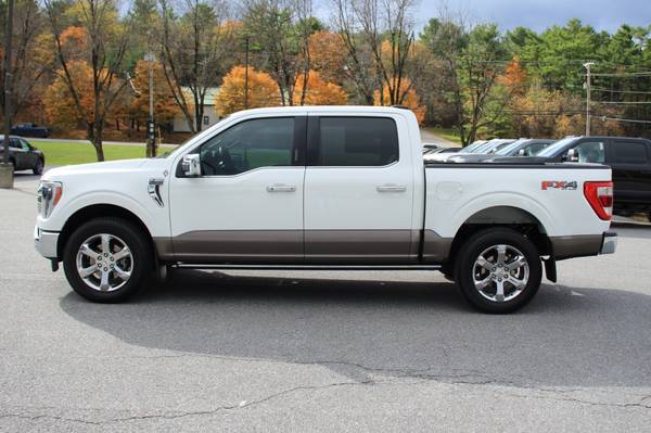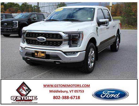 This is a 2023 Ford F-150 King Ranch Crew Cab. This pickup truck is a 4X4 and powered by an aggressive 3.5L EcoBoost engine with 44K miles. This is in good condition, is well maintained and comfortably loaded with power leather heated and cooled bucket seats, power windows and locks, cruise, tilt, tailgate step, power running boards, spray in bedliner, twin panel moonroof and more. Give us a call for more information 802-388-6718. At G. Stone Motor's we take anything in trade!