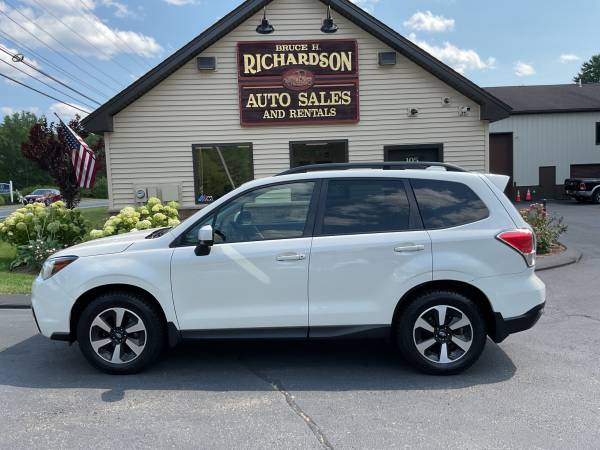 IMMACULATE ONE OWNER 2017 Subaru Forester Premium All Weather that is as nice as they come. Beautiful Pearl White outside that sparkles in the sun. A great equipment list including nice alloy wheels with new tires, panoramic moon roof, H-D Sound system, heated seats, and much more. The best thing is the outstanding condition. Only 99K miles on this beauty. You definitely won't be disappointed.