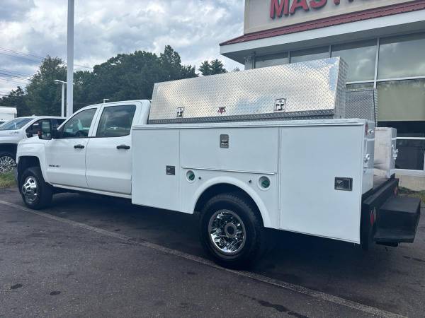 2018 CHEVY 3500HD CREW CAB 4X4 DRW 6.6L L5P DURAMAX DIESEL LOCKING UTILITY BOX SHARP TRUCK WITH LOW MILES!!! CLOTH SEATS, POWER LOCKS WINDOWS AND MIRRORS, CHEVY BLUETOOTH DISPLAY, CLIMATE CONTROL, 4X4 ON THE FLOOR, STEERING WHEEL CONTROLS, AUTOMATIC LIGHTS, LOCKING UTILITY BOX, MAGNUM BACK RACK, K&W CUSTOM TOOLBOXES, FACTORY BOOKS AND MANUALS, SHARP 2018 CHEVY 3500HD 4X4 6.6L L5P DURAMAX DIESEL LOCKING UTILITY BOX WITH 64K MILES!! CREDIT UNION FINANCING AVAILABLE INQUIRE TODAY 603-952-4500!!!!*INTERIOR PICTURES WILL BE UPLOADED ONCE DETAILED* Visit Mastriano Motors LLC online at www.mastrianomotors.com to see more pictures of this vehicle or call us at 603-952-4500 today to schedule your test drive.