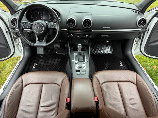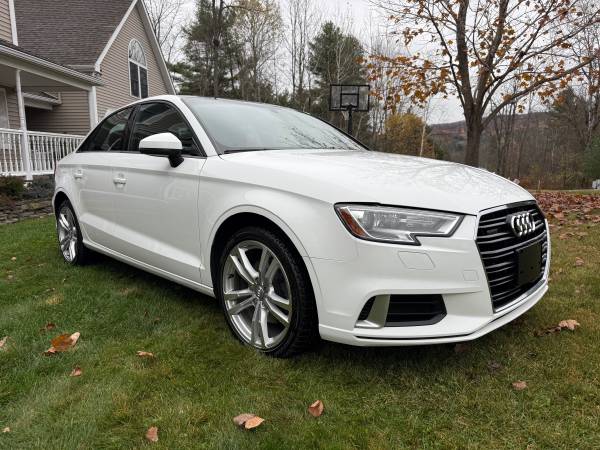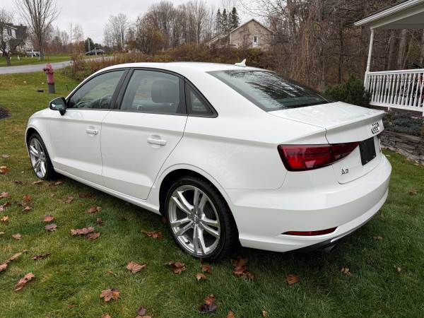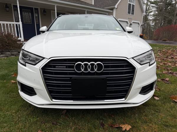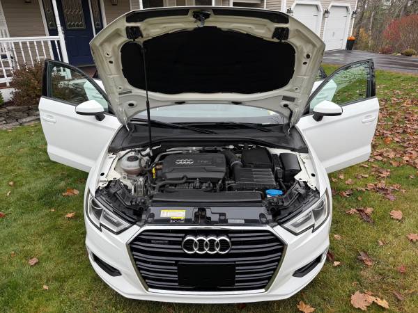 2018 Audi A3 Quattro, Ibis White with Chestnut Brown interior, well equipped premium model, powerful and efficient 2.0 liter turbo DOHC 16 valve 4 cylinder engine, legendary Quattro all-wheel drive system, 6 speed S-Tronic automatic transmission with manual mode, loaded with options including power windows, locks and power heated outside mirrors, enormous panoramic power moonroof with sliding sunshade, 8 way power driver seat with 4 way lumbar support, leather interior, heated front seats, Audi Concert premium audio system, integrated satellite radio, proximity key with push button start, Audi snap-in-place deep rubber floor mats, premium 18" alloy wheels, factory alarm/keyless entry, cruise, digital multi info display, Bluetooth wireless phone and audio connect, steering wheel mounted audio, phone and voice recognition controls, advanced safety features including dual front airbags, dual side impact airbags, dual side curtain airbags, Electronic Stabilization Program, (ESP) Audi pre sense collision assist, and many more options. Body is in excellent condition with absolutely no rust, no major dents, scratches or dings, and the paint has a high gloss shine; interior is exceptionally clean with no stains, no odors, no rips or tears, no smoking and no excess wear; undercarriage is also exceptionally clean; see pics. This Audi has a thorough and consistent service history since new, with 20 service records on the Carfax Report, most services performed at an Audi Dealer, and I have an envelope several inches thick stuffed full of service records from around 30k miles to present. Prior to listing the vehicle for sale, I had my mechanic (A 30+ year VW/Audi Master Technician) check it over and perform all maintenance and repairs that he recommended in order to ensure that it would be 100% up to date for the next owner. Included in this work was a complete 4-wheel brake job including all 4 brake rotors and all 4 sets of brake pads, high-end Bridgestone Blizzak WS90 winter tires, cabin air filter, Mobil 1Euro-Spec full synthetic oil change, and new VT State Inspection good until 11/1/26. This Audi runs and drives great, no "problem lights" on, vehicle has great power, shifts smoothly, sounds and feels tight over bumps, goes down the road straight with no shaking or pulling, brake pedal is high and tight with no shaking or squeaking, interior cabin is very quiet even at highway speeds, ride is very smooth, all options work, everything is very tight, and fuel economy is excellent for an all-wheel drive vehicle. (31 MPG highway, 24 city, 27 combined.) It comes with one full function key, a valet key, the owner's manual and all related literature in the original Audi pouch, and even the original window sticker. I have the car priced $1,000 below the NADA value, and it easily meets the description of what a vehicle should be, condition wise and mechanically, to sell for the full NADA Value; price is currently firm. Current odometer reading is 113,517. Please call or text with any questions. All trade-ins welcome. If you'd like to see my reviews and read what others have had so say about doing business with me, please find this ad on Facebook Marketplace or ask me for a link. Thanks for looking!