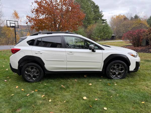 2021 Subaru Crosstrek, well equipped sport model, CVT automatic transmission with manual mode and factory steering wheel mounted paddle shifters, 2.5 liter 4 cylinder engine, cold weather package including heated side mirrors, heated windshield wiper elements and heated seats, symmetrical all-wheel drive, power windows, locks and mirrors, power moonroof with sliding sun shade, steering wheel mounted cruise, audio, phone, Bluetooth and menu controls, premium dark gray alloy wheels, upgraded Subaru Starlink 8.0" multimedia plus system with apps, Rockford Fosgate upgraded audio system, Apple CarPlay and Android Auto, backup camera, multiple advanced safety features including 8 airbags, EyeSight driver assist technology, adaptive cruise control, lane departure prevention, lane-keeping assist, pre-collision braking, blind spot detection with rear cross traffic alert, factory alarm/keyless entry, smart keys with push button start, auxiliary audio input for iPod, iPhone, smartphone, etc., Bluetooth wireless phone and audio connectivity, tilt and telescoping steering wheel, Subaru deep rubber floor mats, rear seatback protectors, rear cargo area mat, and many more options. Body is in excellent condition with no rust, no major dents, scratches or dings, and the paint has a high gloss shine; interior is exceptionally clean with no stains, no odors, no rips or tears, no smoking, and no excess wear. Prior to listing the car for sale, I had my mechanic check it over and perform all repairs and maintenance that he recommended in order to ensure that the vehicle would be 100% up to date for the next owner. Included in this work was new rear brake pads and rotors, (I only use premium brake parts; fully coated rotors and ceramic pads.) all 3 wiper blades, engine air filter, cabin air filter, full synthetic oil change, and VT State Inspection is good until 11/1/26. This Crosstrek runs and drives great, no "problem lights" on, vehicle has great power, shifts smoothly, sounds and feels tight over bumps, goes down the road straight with no shaking or pulling, brake pedal is high and tight with no shaking or squeaking, interior cabin is very quiet even at highway speeds, ride is very smooth, all options work, everything is very tight, and fuel economy is excellent for an all-wheel drive vehicle. (34mpg highway, 27 city, 29 combined.) Clean title in hand, clean Carfax Report, 1 owner, no accidents. The car also comes with both original keys with built in buttons for factory alarm/keyless entry/panic/trunk release, the owner's manual and all related literature in the original Subaru leather pouch, and even the original window sticker. Current odometer reading is 73,969. I have the vehicle priced well below the NADA Value of $23,950, and it goes well beyond meeting the description of what a vehicle should be, condition-wise and mechanically, to sell for the full NADA Value. Please call or text 802-279-8418 or email with any questions. All trade-ins welcome. If you'd like to see my reviews and read what others have had so say about doing business with me, please find this ad on Facebook Marketplace or ask me for a link. Thanks for looking!