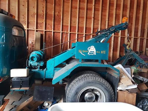 Please text for video, The gentleman who's " baby " this was, died unexpectedly. I'm sure the next owner will appreciate the quality of work that went into it, as he was well known as one of the best mechanics in our area. I'm told that the hook brace is a old truck frame. The winch came off of a Ship anchor hoist / couldn't be more impressive. It sounds like the truck was originally a 18 wheeler / custom built.