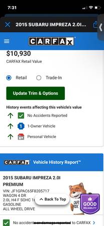 93k miles, auto, clean title and clean CARFAX-no accidents and good service record, new Cooper snow tires, new struts, new brakes, new wheel bearings, new sway bar links, fresh oil change, recent Vermont state inspection, this car is tight and drives like new, interior is immaculent, this car is in excellent condition, factory aluminum wheels, heated seats, cold a/c, great heater, no lights on in dash, back up camera, Bluetooth radio, needs nothing, professional undercoating when new by Auto Armor. $10,400 Call or text show contact info