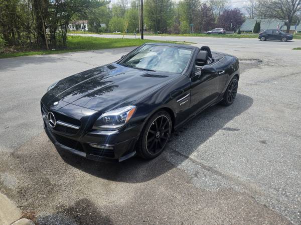 '14 Mercedes SLK55 AMG w/7-spd auto w/paddles. Black on black, hardtop convertible. 32k miles. 5.5L V8, non turbo. Picks up very well and drives really well. Ready to move on to something more mod friendly for car meets and shows.