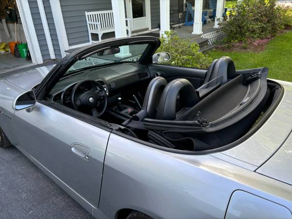 I am moving in the summer and am forced to sell my 2002 Honda s2000. The chassis is very clean, with the car originally being from Florida. It was undercoated when it entered Vermont and has been garage kept its entire life here. Modifications include a cold air intake, an Invidia exhaust, a Mangaflow catalytic converter, unknown aftermarket injectors, and unknown aftermarket pistons. Coolant, transmission fluid, engine oil, and the battery were recently changed, and the car passed inspection in April. The cylinder head, and the supporting gaskets / hardware were recently replaced by a dealership after which the vehicle started consuming notable amounts of oil. The dealership thinks that this is due to a flaw in the installed head and suggested that it be replaced again. Other minor concerns include a broken radio and weak AC. All cylinders have passed a leak down test, and the individual compression values are passing at 180/180/170/180 (however these are all ~30psi lower than the previous head). The paintwork is fair but far from concourse quality and has a noticeable discoloration on the passenger door. The soft top is in good condition and functions well. The odometer on this vehicle has been replaced at some point in its life with the car fax suggesting the true mileage to be around 145k. Car fax, without knowing about the paintwork or mechanical issues, values this car at 24000. I am asking 16500 OBO, not accepting trades.