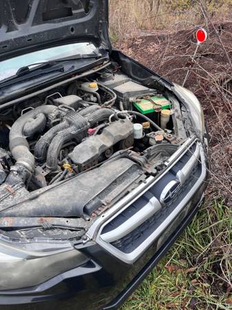 2012 Subaru Impreza for sale with damage to the right door and in need of brake repair, battery change, and motor repair. Payment via Venmo, Zelle, or cash. 1000$ OBO.
