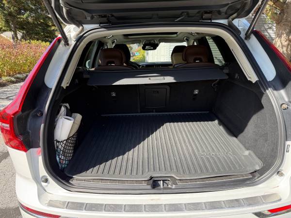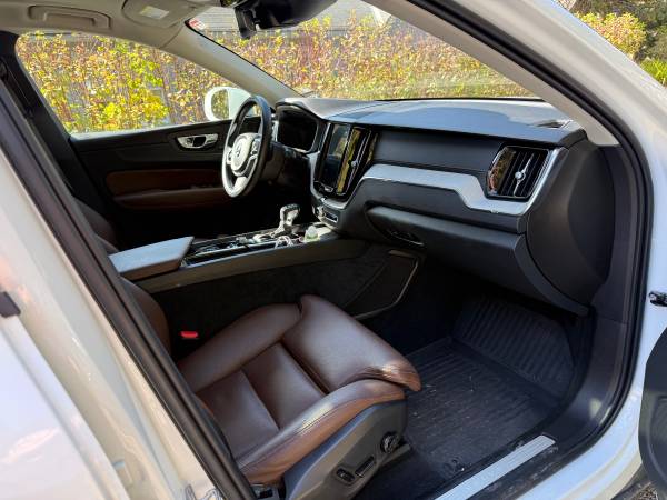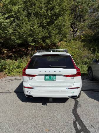 2020 Volvo XC60 AWD in great condition. One owner, meticulously maintained, Crystal White with only 36,500 miles. Dark brown leather seats, cold climate package including front and back heated seats and heated steering wheel. Harman Kardon sound system. Moon roof, I-phone and android car play, heads up display, and large screen with multiple apps and more. All the safety features that are available. All season tires and winter tires included. Has a two inch trailer hitch receiver for mounting bike racks, etc. Also has Sirius XM, Navigation system, Volvo On Call, Bluetooth, keyless entry/start, air conditioning (four zone), Adaptive cruise control, power tailgate release, and BLIS blind zone warning system. Also, rear camera and 360 degree camera. VIN number available to serious buyers. (Crossbars not included.)
